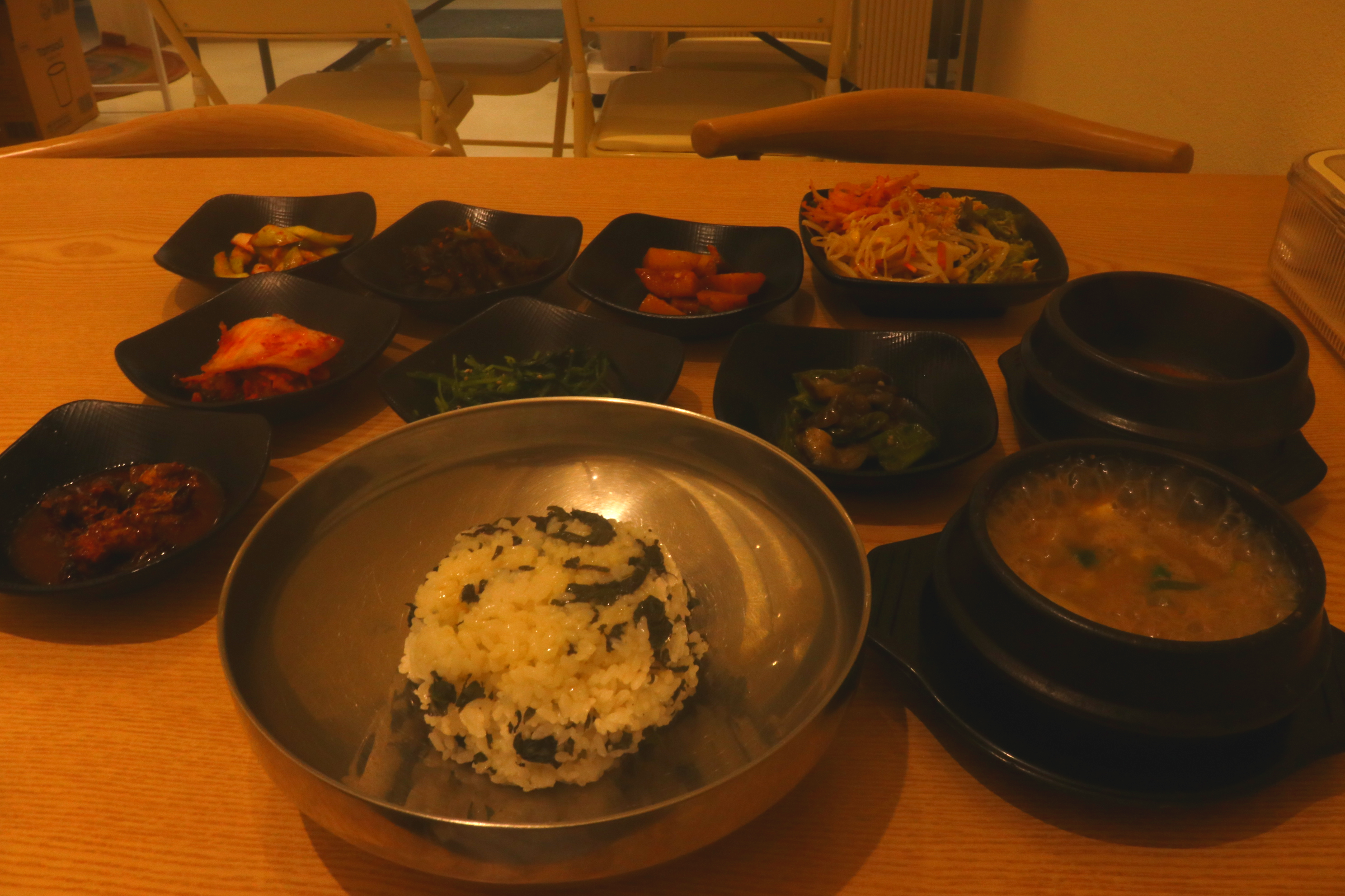 따뜻한 돌솥에서 모락모락 피어오르는 김과 함께 정갈한 반찬들이 차려지는데.. 군침이 츄릅