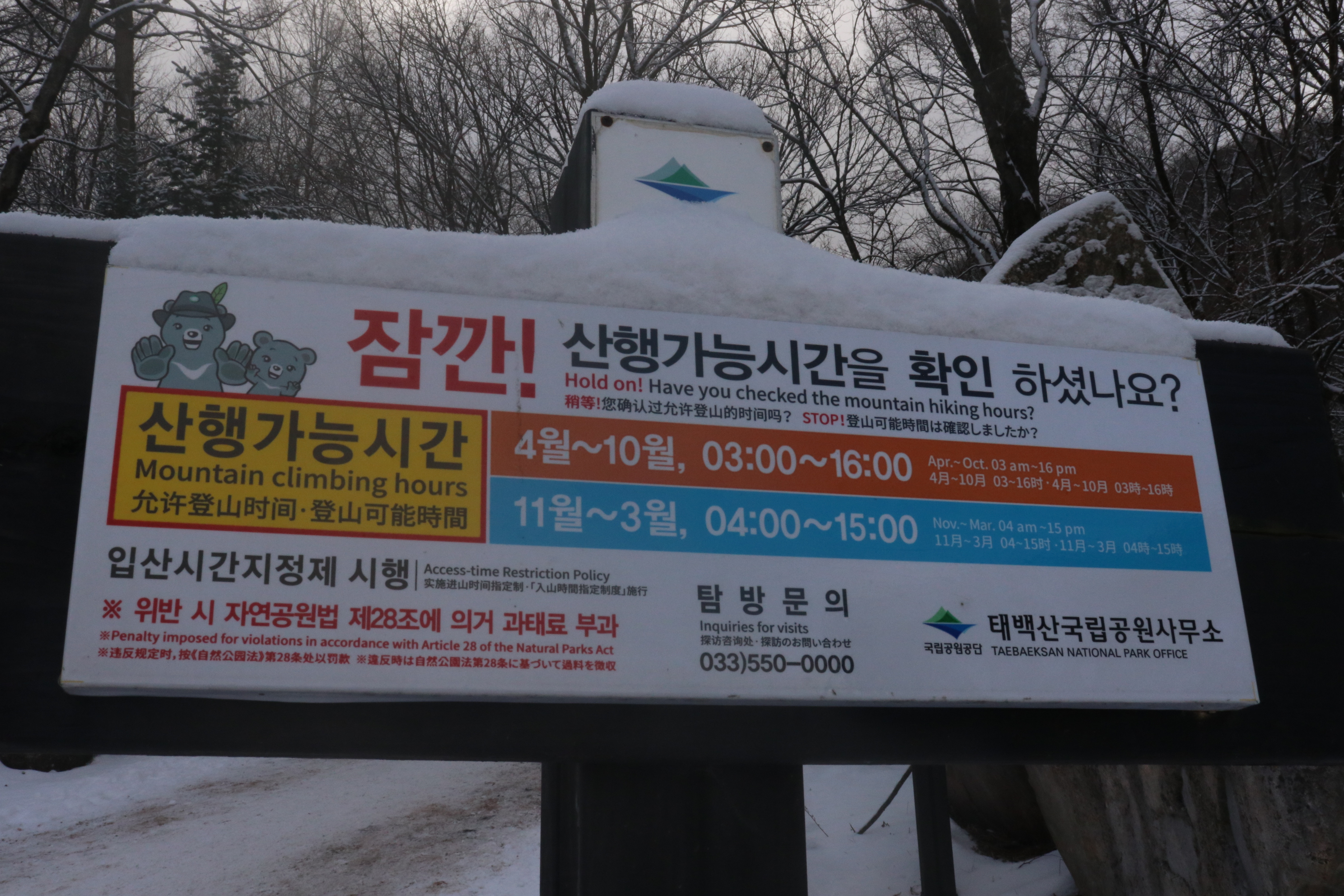 그리고, 산행 가능 시간도 지정 되어 있으니 산행 하실 분들은 아래를 참고하여서 미리미리 계획 해보아유
