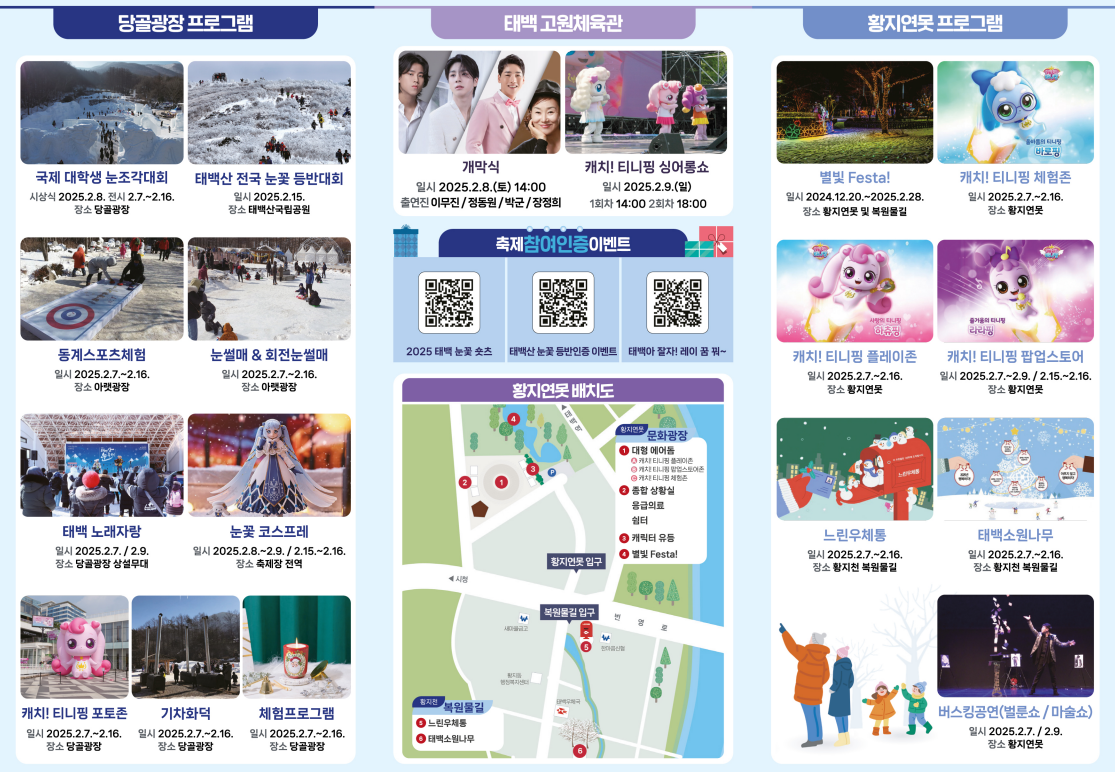 눈과 얼음을 테마로 한 다채로운 프로그램과 태백의 겨울 경관은 방문객들에게 잊지 못할 추억을 선사하죠.