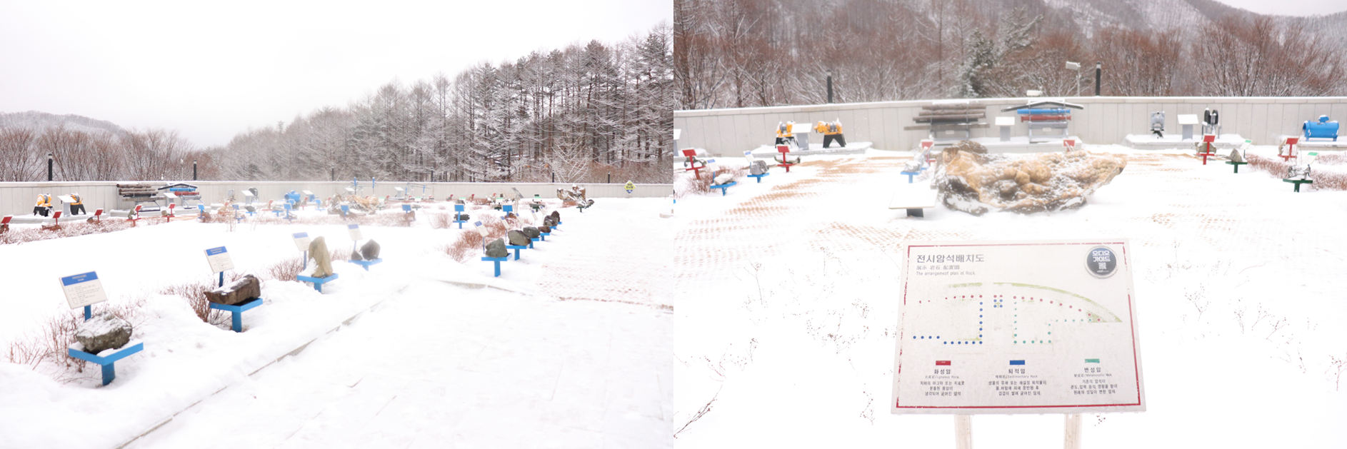 휴게소 바로 옆에는 다양한 암석들이 야외 전시되어 있습니다.